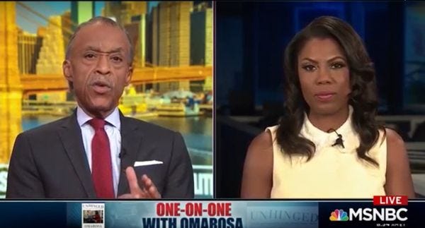 Omarosa had plenty to say about African American outreach, and how stupid she looked (not in those words) when she tried to convince Al Sharpton to meet with Trump so he could be used as a prop. I guess Sharpton wasn't interested in becoming one of Trump's African-Americans and declined.
