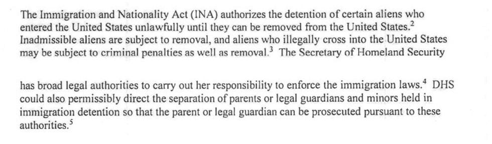 The memo outlines the case for adopting "zero tolerance" and makes the case that DHS totally has authority to separate kids from their parents, if the Secretary should wanna: