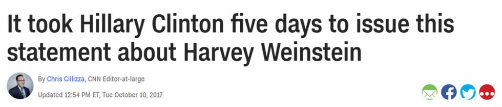 Well wouldn't you know it, but not long after Cillizza hit "publish" on the LiveJournal trash he inexplicably gets paid the big bucks to produce, Hillary Clinton made a statement on Harvey Weinstein: