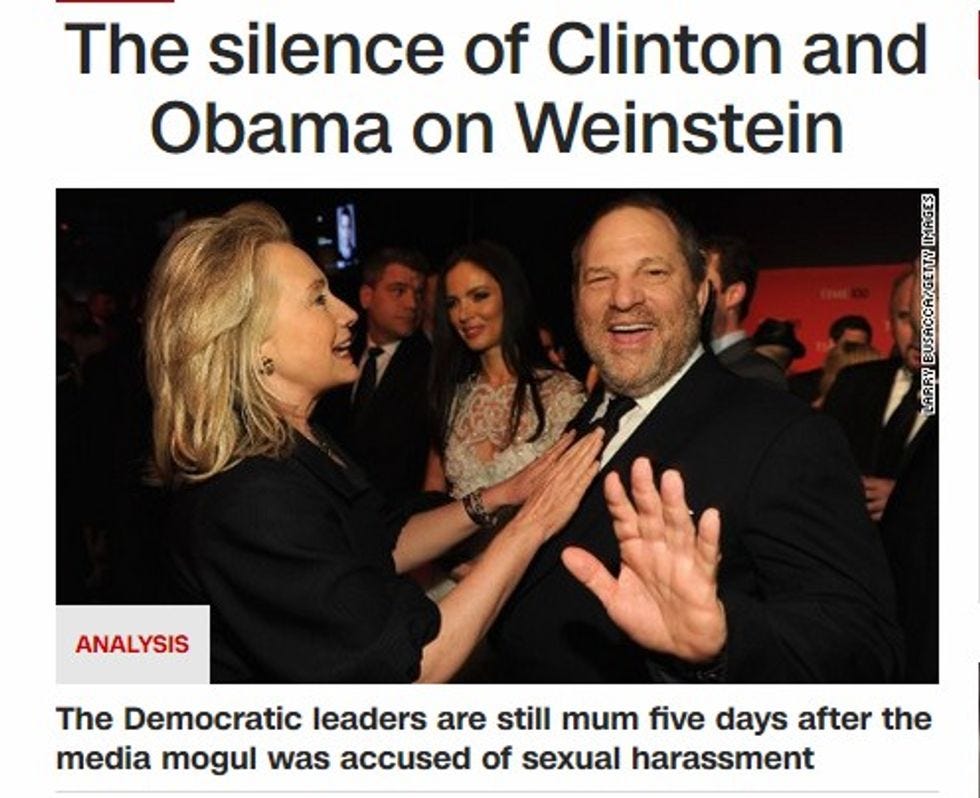 Now, we know what's likely rolling around in that weird-shaped head of his. Since Cillizza went to the Chuck Todd School For Kids Who Can't Journalism Good And Want To Learn How To Do Other Stuff Good Too, this is probably his proof that BOTH SIDES DO IT, because hey, President Donald Trump might be an admitted sex slimer, but did you hear about Harvey Weinstein? AND EVEN MORE IMPORTANTLY, #WhatAbout Hillary Clinton and Barack Obama BUT MOSTLY HILLARY CLINTON, who didn't comment on the Harvey Weinstein allegations on Chris Cillizza's holy schedule?