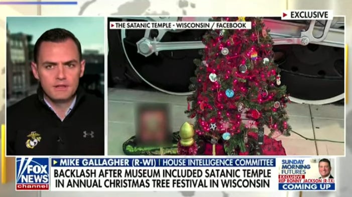 There’s some kind of Satanic Christmas tree in Wisconsin and all the dumbest conservative Christians in America are taking the bait and going into histrionics about it. Surprise.