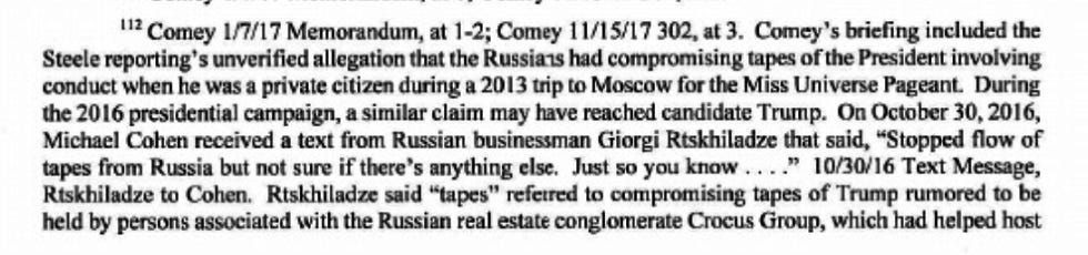 But in a footnote to that section is the far more interesting news that Trump most likely probably knew about the pee tape allegations months before that, just before the election in October 2016. Let's go to the footnote on pages 27 and 28 of that section: