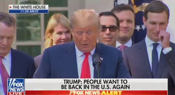 For instance, in this video, he calls on a female reporter, ABC's Cecilia Vega, who for some reason says she's "not thinking," perhaps because she's surprised Trump called on her. (UPDATE: Upon further review of the video, pretty much everyone agrees she said, "I'm not. Thank you, Mister President.") Like a total dick, he replies, "I know. You never do." This elicits a shocked, "I'm sorry?" from Vega, but no matter, it's just Donald Trump being a chauvinistic sack of crap again. NO BIG DEAL.