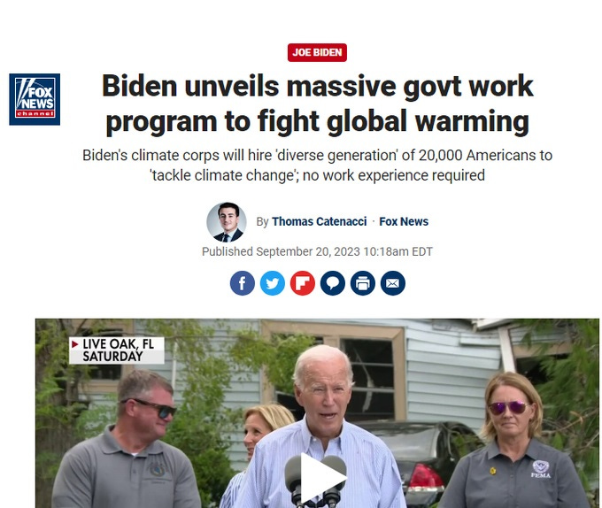 Fox News headline: “Biden unveils massive govt work program to fight global warming”