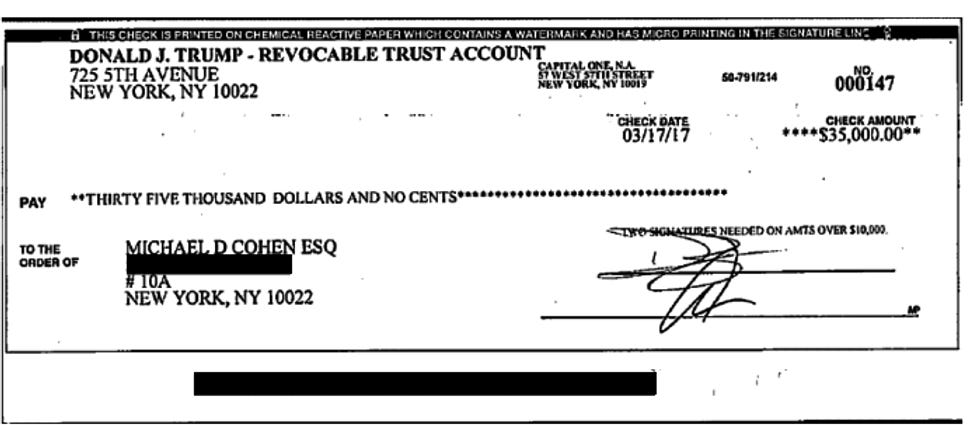 Would that be DJ's John Hancock on this reimbursement for the hush money payment "laundered" through the Donald J. Trump trust account? Which we already knew , but ... time for this dude to be led out in bracelets! There was a conspiracy to violate campaign finance laws, and Executive 2 needs to pay the price.