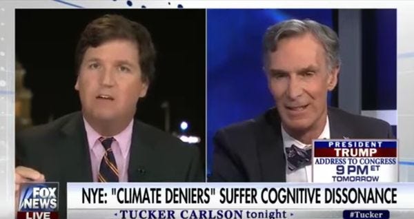 On Climate, Tucker Carlson Teaches Bill Nye How To Be So Open-Minded Your Brain Falls Out. Your Open Thread!