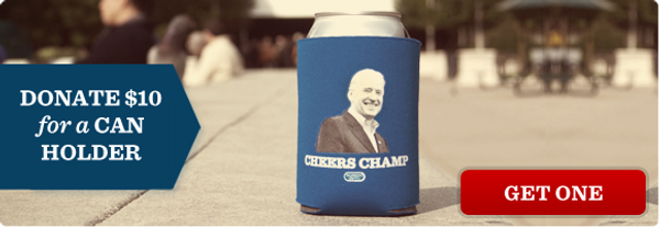 Is there "some stuff" going on in the country today, maybe? Sure, a few things, like shopping day with Joe Biden! Here for example from some freshly-arrived Barack Obama re-election campaign spam promoting their online store is this convenient beer koozie with Joe's goofy grinning mug on it. And what's the "best part" of showing your support by using the Internet to purchase cheap crap, according to the email? "You won't have to fight the crowds, or even leave home." See, nice 'n safe!