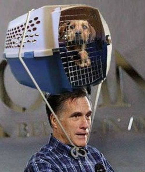 Well look who is the luckiest bastard on earth: apparently one third of Americans do not have an opinion of Mitt Romney for some reason, which CBS has characterized as a “challenge.” Your Wonkette, on the other hand, feels that this might be more aptly described as a “gift” seeing that he is a horrible person whoevadesavoids taxes, has a son named Tagg, and has STRAPPED A DOG TO THE ROOF OF HIS CAR. Also, what if a hurricane comes and kills a bunch of people and now we don't get to know who Mitt Romney is? Yes, this is an actual concern articulated by the good people at CBS.