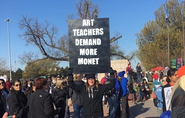 The idea would be to repeal just one slice of the Republicans' Big Fat Tax Cut -- the portion received by the top one percent of Americans -- and to redirect more than $100 billion in revenue over the next 10 years into two main programs: $50 billion in new spending to increase teacher pay, and another $50 billion to pay for new school infrastructure. Since teacher pay in many states has remained flat since the Great Recession (with inflation causing an actual decrease in spending power), teacher pay and education funding has generated a hell of a lot of support for teachers who've walked off the job to demand states restore school funding, and this proposal is clearly meant to build pro-education sentiment into votes this fall.