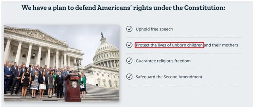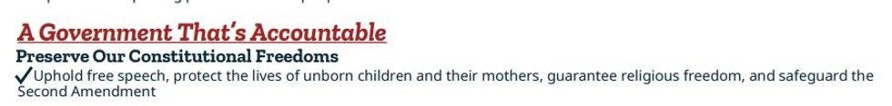 In the revised version of the agenda's outline, "protect the lives of unborn children and their mothers" is stuffed into the same line as free speech, religious liberty, and the Holy Second Amendment:
