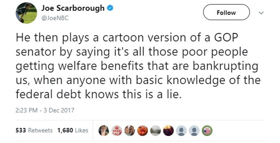 MSNBC host Joe Scarborough had thoughts on the exchange, and they were surprisingly clear thoughts:
