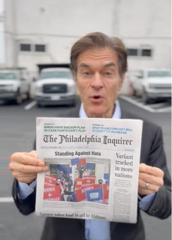 The guy has lived in New Jersey for upwards of a decade and only established residency by "renting" his in-laws' house in Montgomery County a couple years ago. He's never done anything in politics, and appears to have no fixed political beliefs other than tacking five clicks to the right of the median Keystone Republican voter in an attempt to get out of the primary without ruining himself for the general. But it's Oz's unforced errors on the campaign trail that prove he's as fake as the raspberry joy juice he flogged as a miracle weight loss cure.