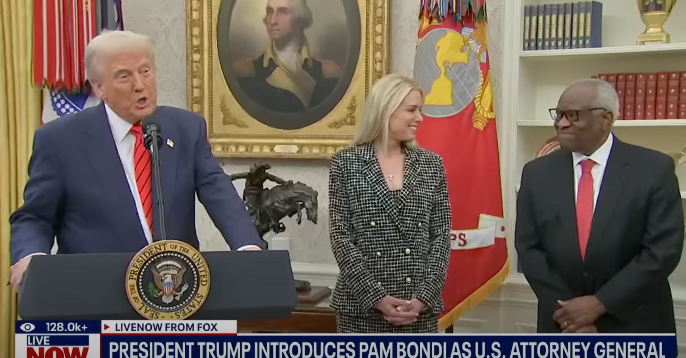 Pam Bondi Suddenly Finds Enemies List, Maybe Clarence Thomas Slipped It To Her In The Oval