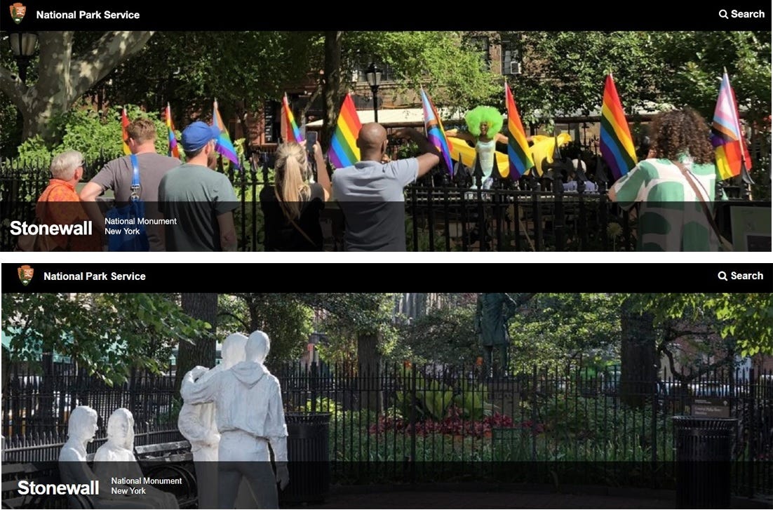 But! Here’s where we have a little bit of hope: The actual 2016 guidebook to LGBTQ America remains live on the Park Service server. You just have to go right to the URL. (Update March 7: Yep, it’s gone too, now, but lives on at the Wayback) That’s also true of this very queerforward, honest essay on the Stonewall monument, which even before the purge noted that histories of the rising “have sometimes whitewashed this watershed moment for the LGBTQ community” and points to just how truly diverse the heroes of Stonewall were. Same goes for yet another page, a detailed discussion of “Telling All Americans' Stories: LGBTQ Heritage.” (Update March 7: The essay is still there; the latter page is only available by Wayback)