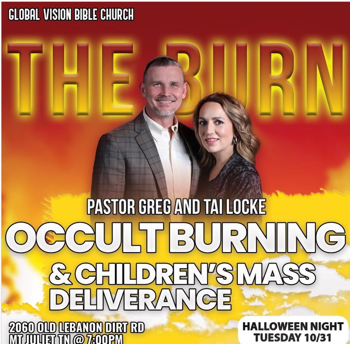Not only that, Pastor Locke and his wife Tai (who was his secretary until he divorced his other wife a few years ago, and is likely just as holy) will be hosting a very exciting bonfire of “occult objects.”