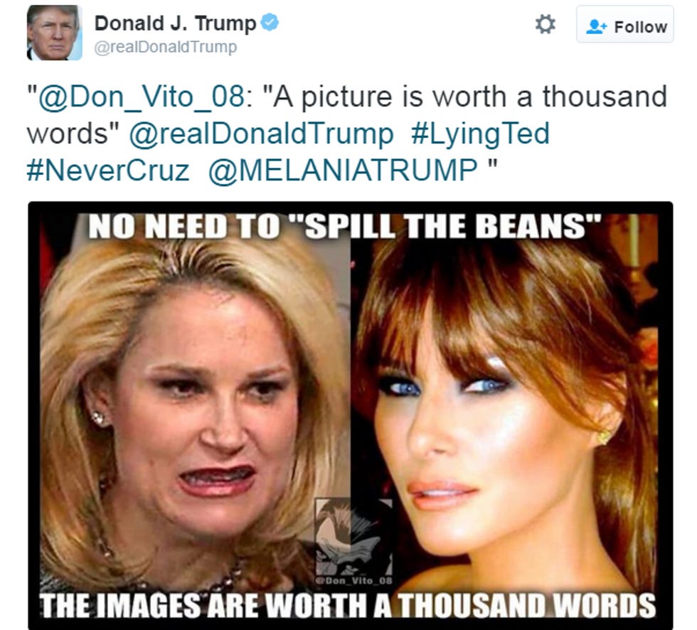 Trump insisted he'd merely retweeted something someone else posted, so he is utterly blameless, and besides, "I didn’t even know it was necessarily a very bad picture of her versus Melania.” Sykes missed the opportunity to suggest Trump needs to have his eyes checked if he really didn't notice the photo made Heidi Cruz look horrible.
