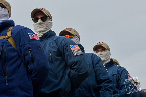 I gestured for him to walk a little further and whispered back that it was Patriot Front, a white nationalist group with ties to neo-Nazis.