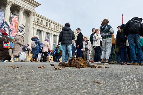 There were elderly nuns and clergy in fancy robes. Thirty-one flavors of deep-pocketed dominionists hoping to turn the US into one convoluted theocracy. Teenagers from blink-and-you’ll-miss-it towns off highway exits in the Midwest NeitherWorld frolicking around large piles of horse shit. Some carried PVC banners, others had hastily scribbled signs on poster board. Others passed out self-published books on how we are living in either The End Times, The New Beginning, The Second Coming, and so on, which argue that this is all part of the great cosmic plan orchestrated by the great invisible, infallible, interdimensional and omnipresent space man in the sky.
