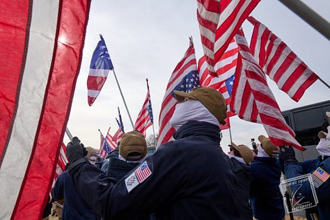 They marched with less coordination than a high school JROTC color guard at a pee-wee football game. Some of them tripped on loose shoelaces, attempting to keep step with one another while balancing their upside down American flags in the blustery wind.