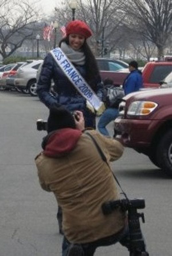 I rode my bike around town on MLK Jr. Day, simulated the parade I would never see, took some photos for tourists who asked if I would be standing close to the Capitol during Inauguration (I said hells no, he is going to be interrupting my commute for the next 4-8 years anyway) and the only celeb I saw in the sea of hawked Obamajunk was Miss France. I had to google her later because she didn't look like a Miss France even when she put on the sash.