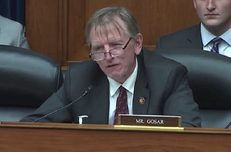 Rightwing Congressman, dentist, and white-teeth nationalist Rep. Paul Gosar (R-DDS-Arizona) complained in a House Oversight Committee hearing yesterday that Joe Biden’s strategy for fighting the overdose crisis is seriously flawed because it doesn’t have any God in it. The hearing was supposed to be about the federal Office of National Drug Control Policy’s approach to the opioid crisis, but Gosar found a severe oversight in the plan, which he had either read or asked a staffer to open and then do a quick text search upon. Here’s the video of Gosar speaking on drugs: