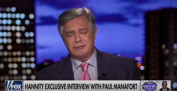 Obviously everybody wants to know what Paul Manafort is doing now that he's pardoned from being in prison serving time for the crimes he was correctly convicted of committing. Especially since we now have so much information about how hard he worked and what all he did to help steal the 2016 election for Donald Trump and Russia. And especially since he has such a long history of doing odd jobs for Russian oligarchs and pro-Russia Ukrainians and political parties, which is especially interesting what with Vladimir Putin — best buddy of Manafort's former boss Oleg Deripaska — currently committing mass bloody murder of children in Ukraine.