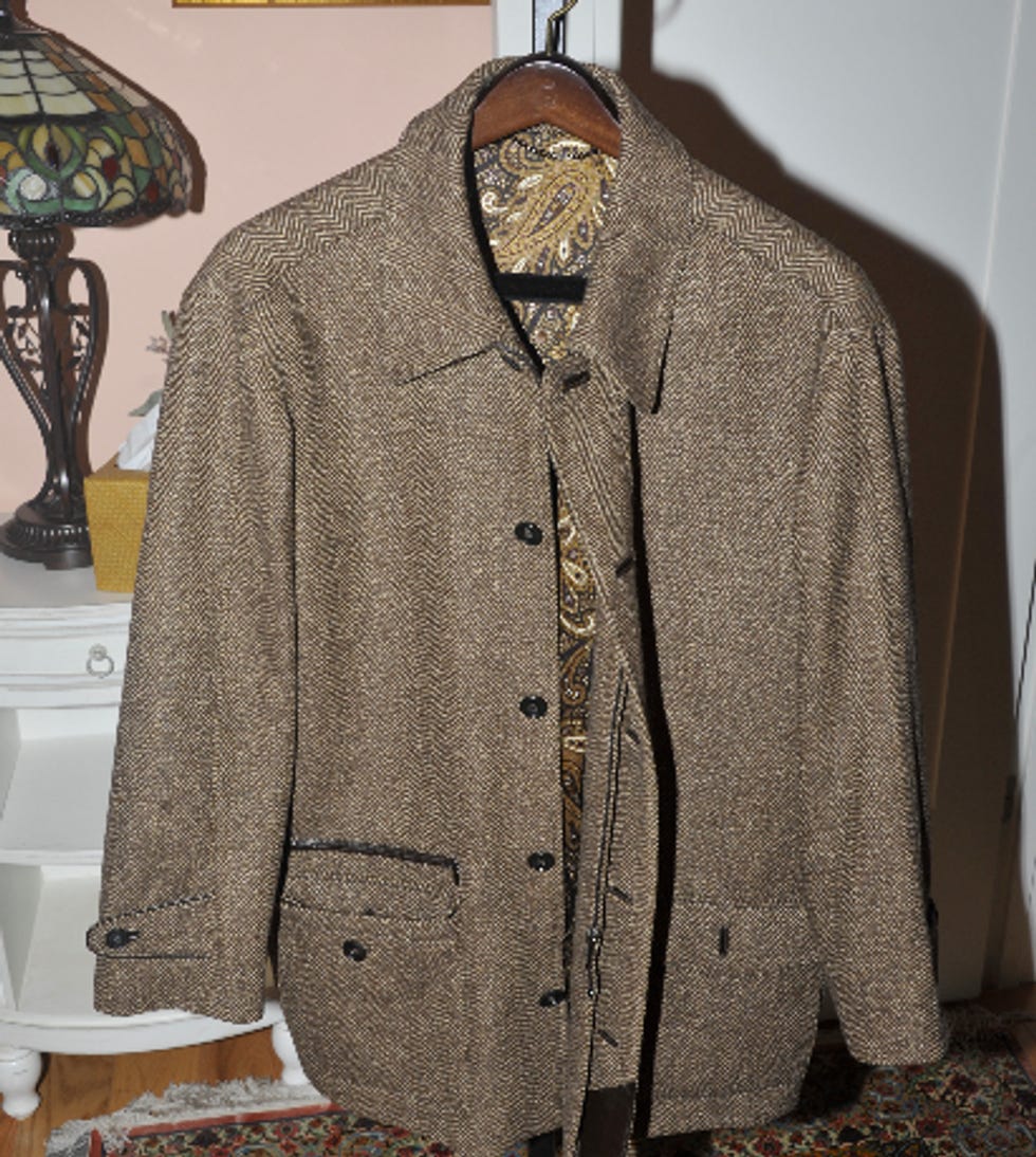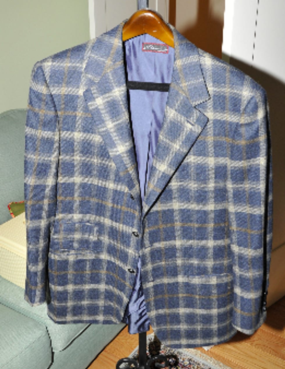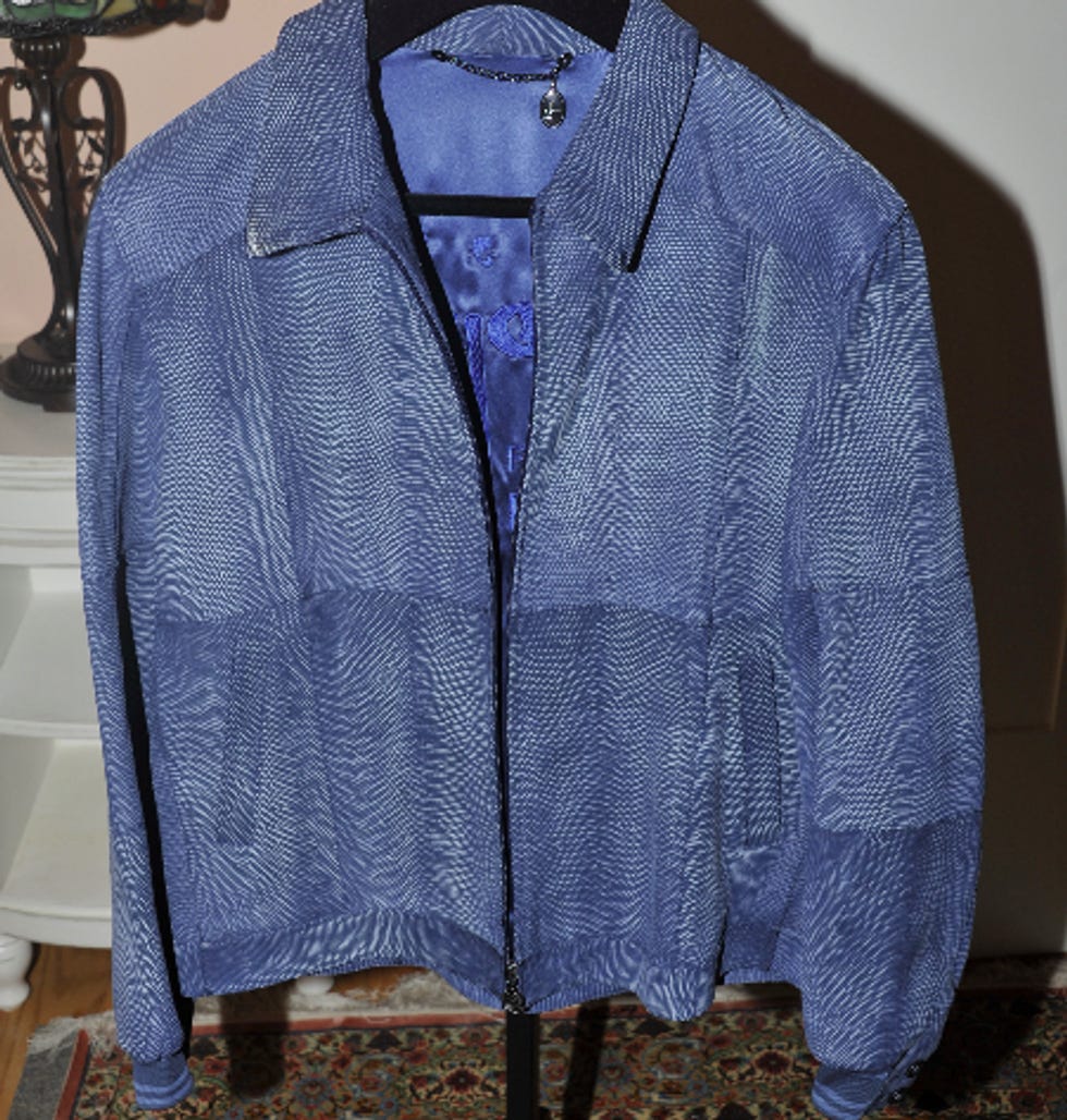 Now, as you may know, I worked in fancypants retail for a long time. So, whenever I see an item of clothing, my first thought is still "Who is the customer for this?" I have been staring at this jacket for two days now, and so far, the best I can come up with is "Used car salesman?" "Uncle fond of the 'got your nose' game?" "The host of a 1970s dating game show?" "Sleazy dude going on a hot date to a fern bar?" Like, I cannot mentally imagine a scenario in which a human person wears this jacket and doesn't look like a total dillweed. Yes, I brought the word "dillweed" back, specifically for this jacket. It is possible that this is the "blue lizard" jacket mentioned in the invoice (because "lounge lizard?"), and that it cost $32,800. If that is the case, that is way more embarrassing than the ostrich jacket.