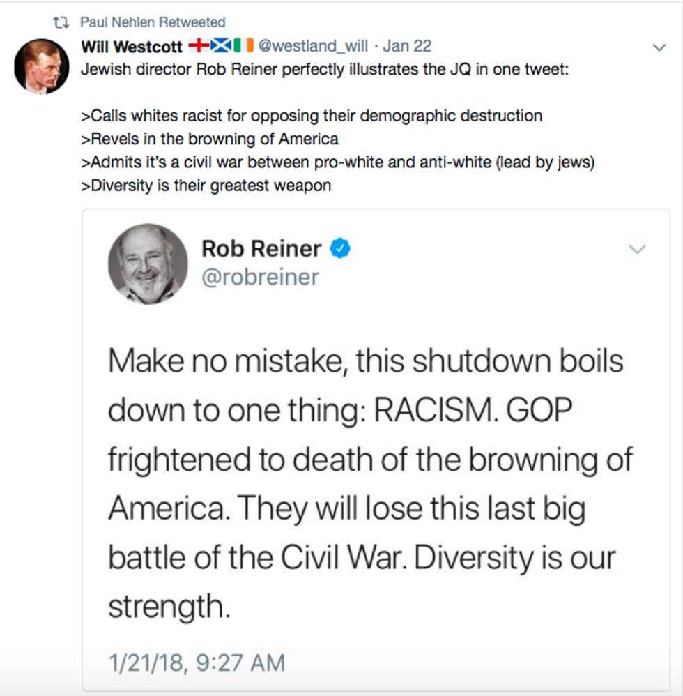 Nehlen also recently retweeted a post claiming that anti-racism is a Jewish conspiracy meant to undermine white people, which has been a popular theory among racists and anti-Semites dating at least back to Henry Ford's "The International Jew" series: