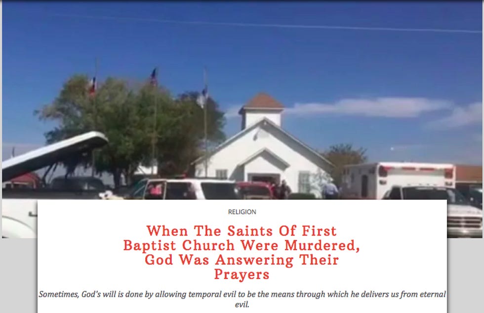 According to an even more appalling person writing for The Federalist, Lutheran pastor Hans Fiene, this shooter was actually God's way of answering their prayers.