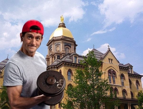 In a dazzling demonstration of failing upwards, Paul Ryan has secured himself a sweet teaching gig at the University of Notre Dame for the 2019-2020 academic year, the university announced Monday. The former speaker of the House and devotee of starving grannies for their own good will be a guest lecturer in economics and politics. Ryan is one of three "professor-of-the-practice" appointments, and will teach on "the fundamentals of American government, the current state of political polarization, and Catholicism and economics, among other topics."