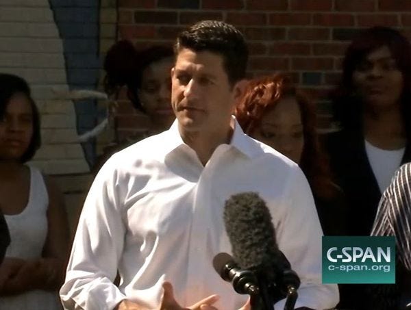 House Speaker Paul Ryan Tuesday issued a strong condemnation of Donald Trump's racist remarks about a federal judge, then immediately said that of course he still plans to vote for the guy making racist remarks because he isn't Hillary Clinton, duh. Speaking at an event designed to unveil the GOP's terrific plans for fighting poverty (let's just assume it involves tax cuts for the rich), Ryan had nothing good to say about Trump's "indefensible" remarks on Judge Gonzalo Curiel, who's presiding over one of the (many) fraud lawsuits against Trump's scammy "University."