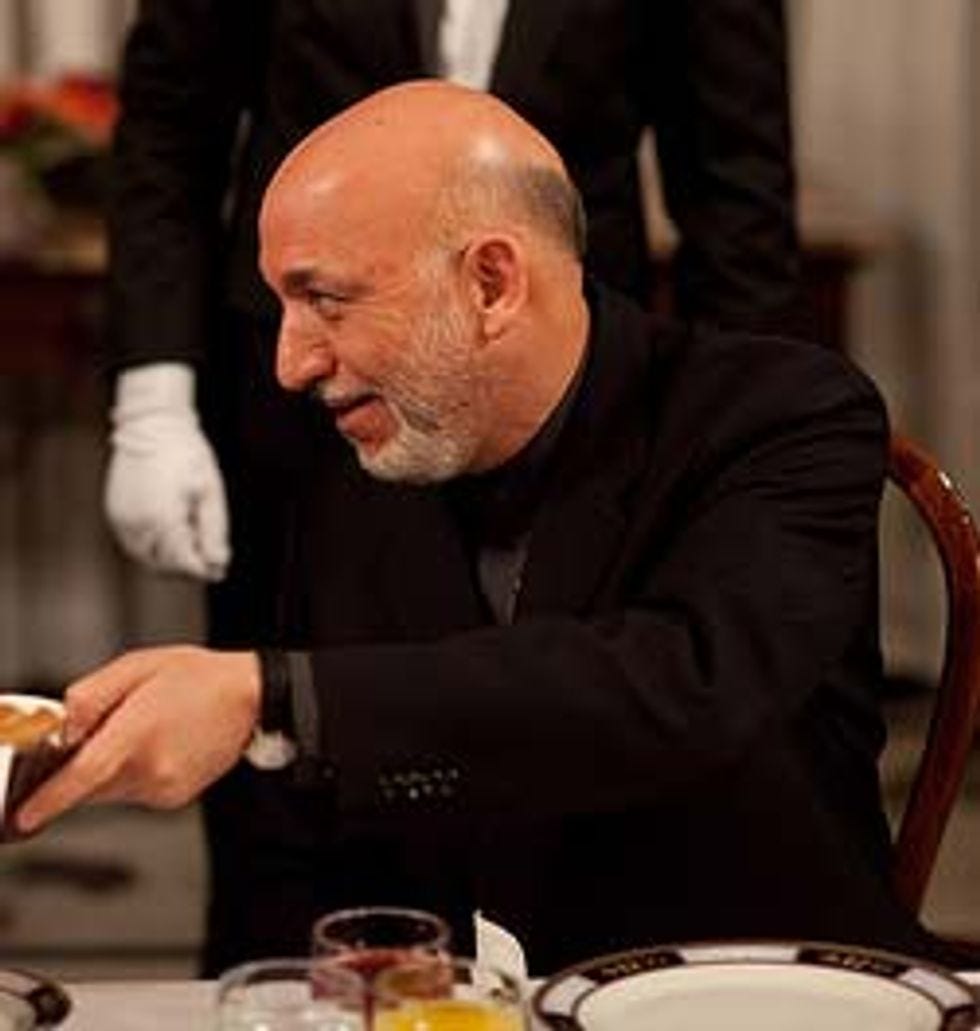 NATO is escorting some high-level Taliban leaders that they were previously trying to kill to Kabul so that they will make nice with Hamid Karzai and the Afghan government and we can all go home, hooray! "High-level" does not include Mullah Omar, who is apparently a "prisoner" of the Pakistani ISI spy agency. Oh, and the ISI -- which, we should emphasize, is the spy agency of one of our allies -- will kill any Taliban leaders who try to make peace, because, uh, it's complicated![ NYT ]Also, 23 percent of the ballots from last month's Afghan parliamentary election have been thrown out, because of fraud. But from another, more optimistic perspective, a full8777 percent [gah it is too early for math] of ballots from last month's Afghan parliamentary election weren't fraudulent, or at least nobody can prove that they were. [ AP ]