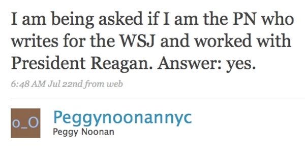 Peggy Noonan Worked With Ronald Reagan!Jim NewellJul 23, 2009ShareBRAGGART! [ Peggy Noonan's Twitter ]Want to just donate once?PreviousNext
