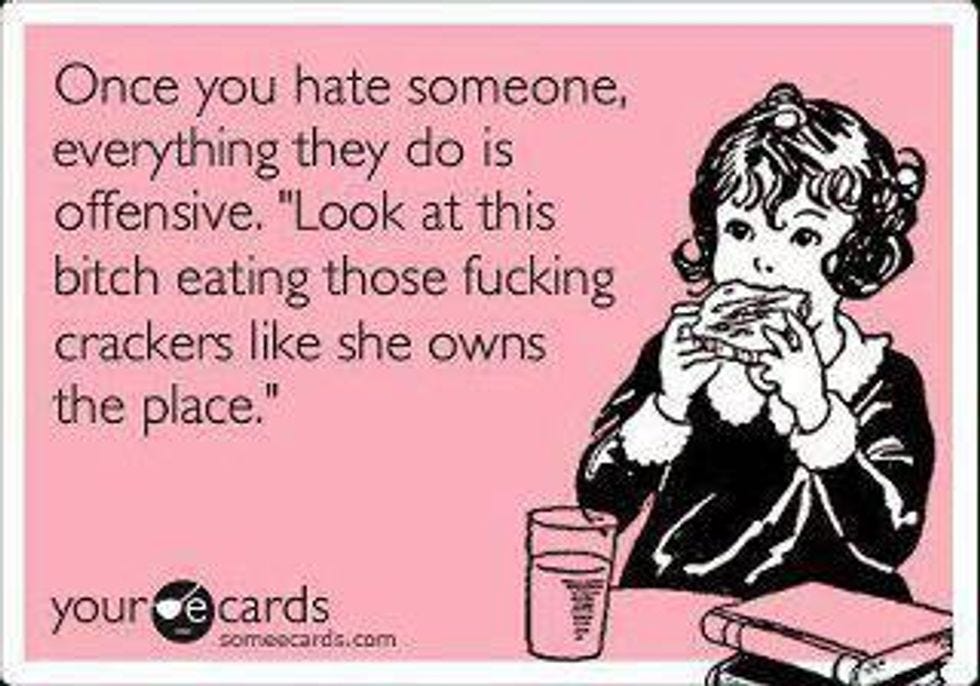 This is why it's generally a good idea to be skeptical of things that make us feel a little too satisfying, a little too good, especially when it concerns those we have gone a little bitch eating crackers on.