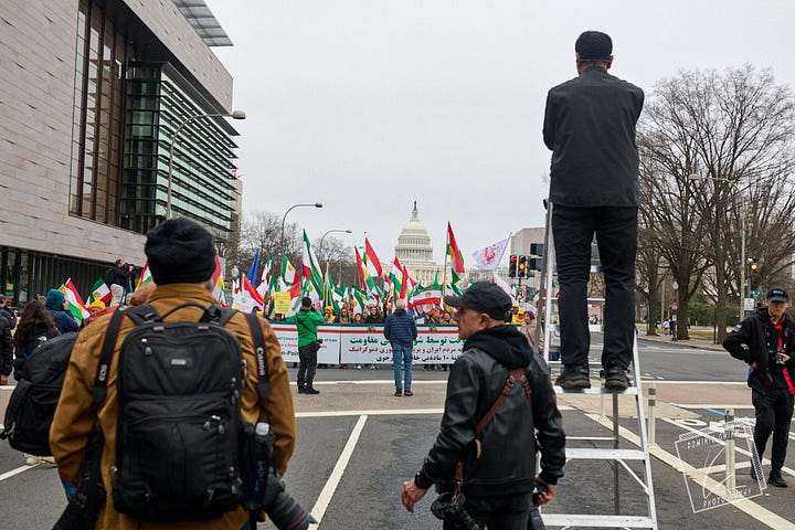 But these weren’t the only protests going on in DC that day. Earlier, over on Capitol Hill, there was a rally and march to support the fall of the Islamic Republic organized by the Organization of Iranian American Communities. People from the Iranian diaspora from across the US milled about and gave speeches before conducting one of the most organized and stage-managed marches down Constitution Avenue that I’ve ever seen. And to think, it wasn’t that long ago that some of these people would have been labeled terrorists by the US!