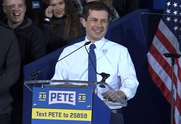 Do not be alarmed by that nearly two-hour timestamp on the video; we have advanced the start point to when Buttigieg actually takes the stage, whew. So it's right around a half hour.