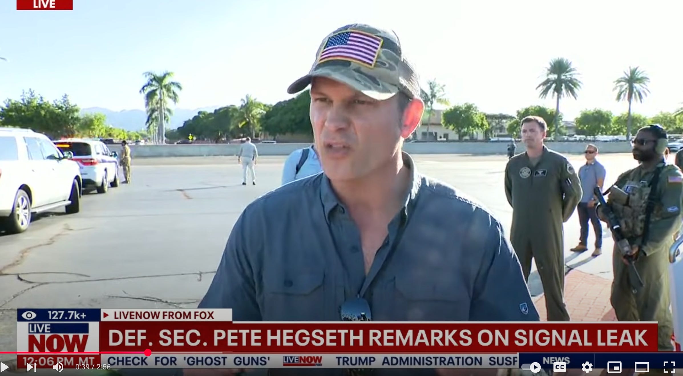 There was that thing just under a week ago — really, not even a week! — where Pete was apparently planning to show China’s bitch Elon Musk America’s secret contingency plans for responding to war with China. And now Signal-Gate.