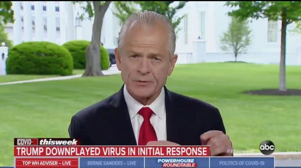 After “This Week" host George Stephanopoulos challenged him, Navarro backed down from claiming China “deliberately" wrecked the US economy, but he argued that China hid the virus for two months with the help of the World Health Organization. WHO declared COVID-19 a global health emergency in January, when even Navarro himself was warning the White House about COVID-19. Trump would spend most of February dismissing the coronavirus as man-flu.