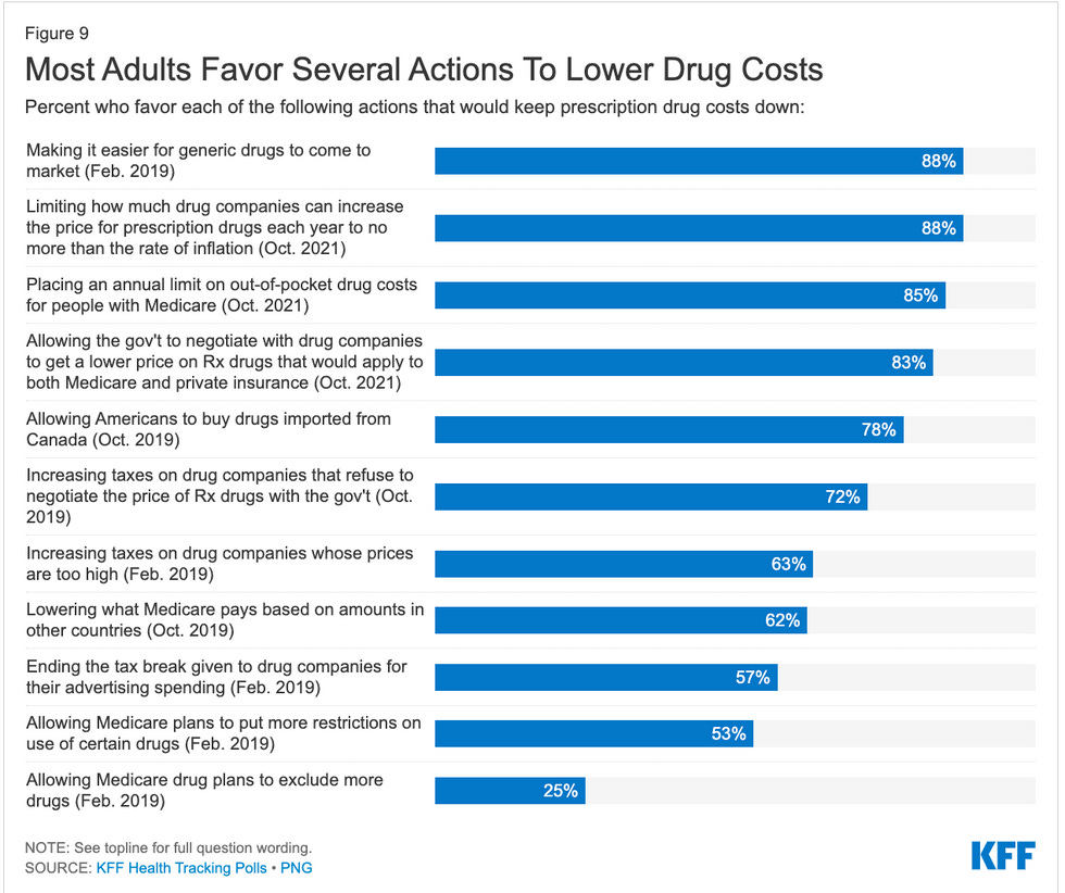 Although at this point I think that one is probably a hard sell. Polls have shown for years that huge majorities of the country want the government to do far more about the price of pharmaceutical drugs than just letting Medicare negotiate prices.