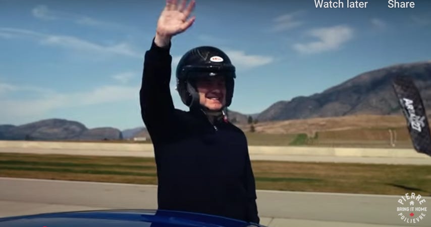 It’s hard to imagine fearsome chief strategist Jenni Byrne had advance notice of the headset-in-a-’vette scheme, and it’s likely Speedy Gazoo only found out himself after arriving — as Dukakis did — that helmets are required for safety reasons. She surely must’ve seen a cut before it was posted on YouTube though, but then again this is the same person who thought it was a good idea for former PM Stephen Harper to announce he’d create a special “barbaric cultural practices” hotline to report suspected crimes such as honor killings or maybe Haitians eating pets. Even though 911 exists. The open racism is widely considered the reason the incumbent got his ass handed to him by Justin Trudeau in the 2015 election. Which is a much better reason to lose an election than cosplaying as a tank commander.
