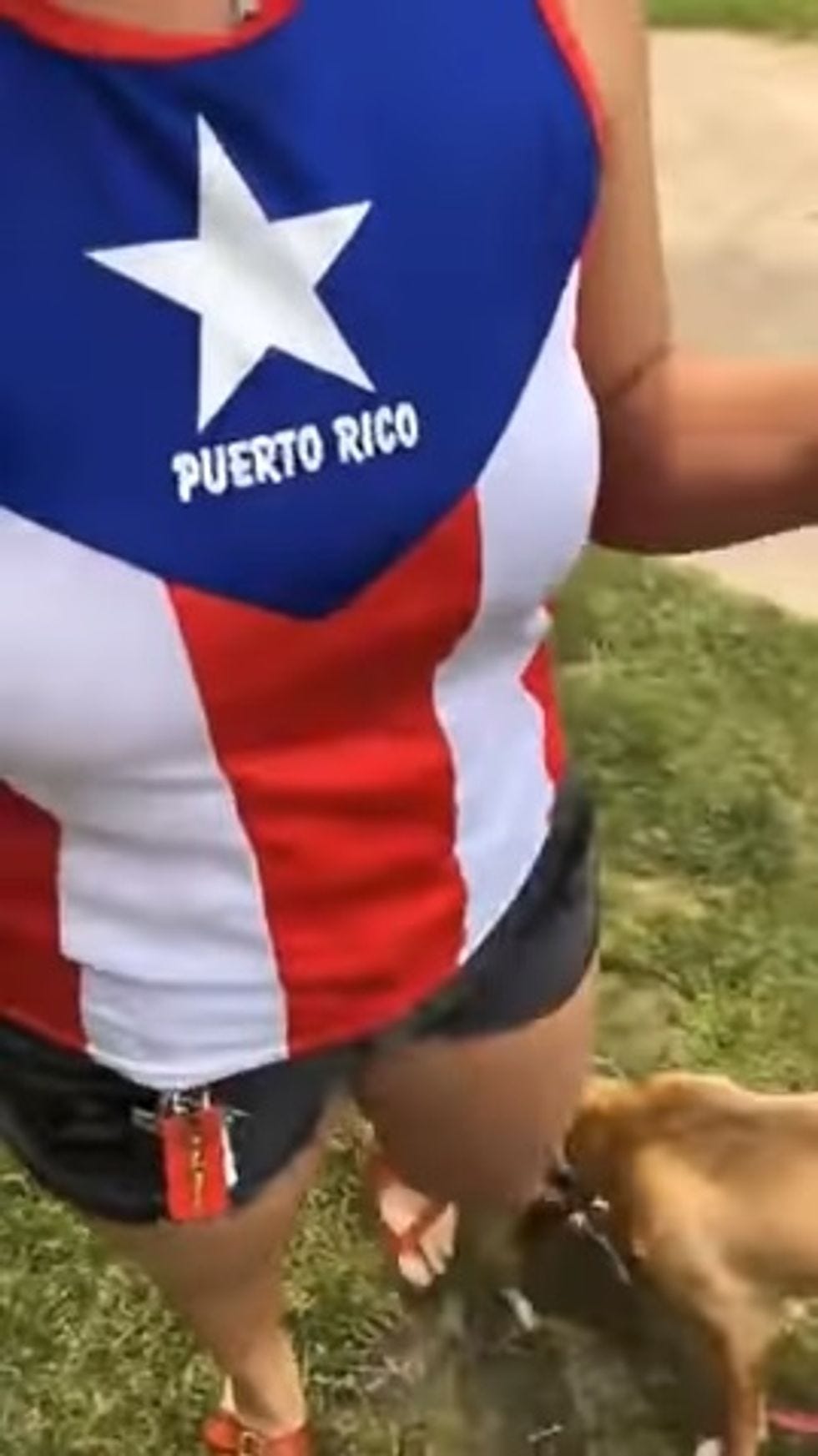 The woman, Mia Irizarry, had reserved a pavilion at the Forest Preserves (looks like a "park" to us) for a birthday party, but the drunk had some very important geopolitical matters to question her about, like whether she's a US citizen. She insists she is, what with Puerto Rico being part of the USA, but Whitey McDrunkerton insisted the US only "protects" Puerto Rico, which is wrong from just about every possible angle. Besides, if she's American, she wouldn't be wearing such a horribly offensive outfit with the flag of a non-American place on it: