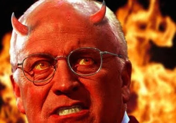 Politico, which is a publication we all still have to pretend isn't just a retrograde mouthpiece for dickheads, gave human death's head mask Dick Cheney, his bride of satan, Lynne, and his chip-off-the-old-demon Liz (the gay offspring wisely declined to attend) a lunchtime platform to spew some nonsense and hate about oh, so many things really. You have to hand it to the Cheney family. Their hatefulness is really really well-rounded.