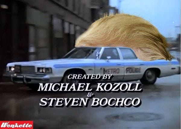 We are somewhat disappointed, if only because we wanted to know whether Trump would have ended the briefing with the classic Hill Street Blues caution "Let's be careful out there," or the tougher post-Michael Conrad phrase "Let's do it to them before they do it to us."