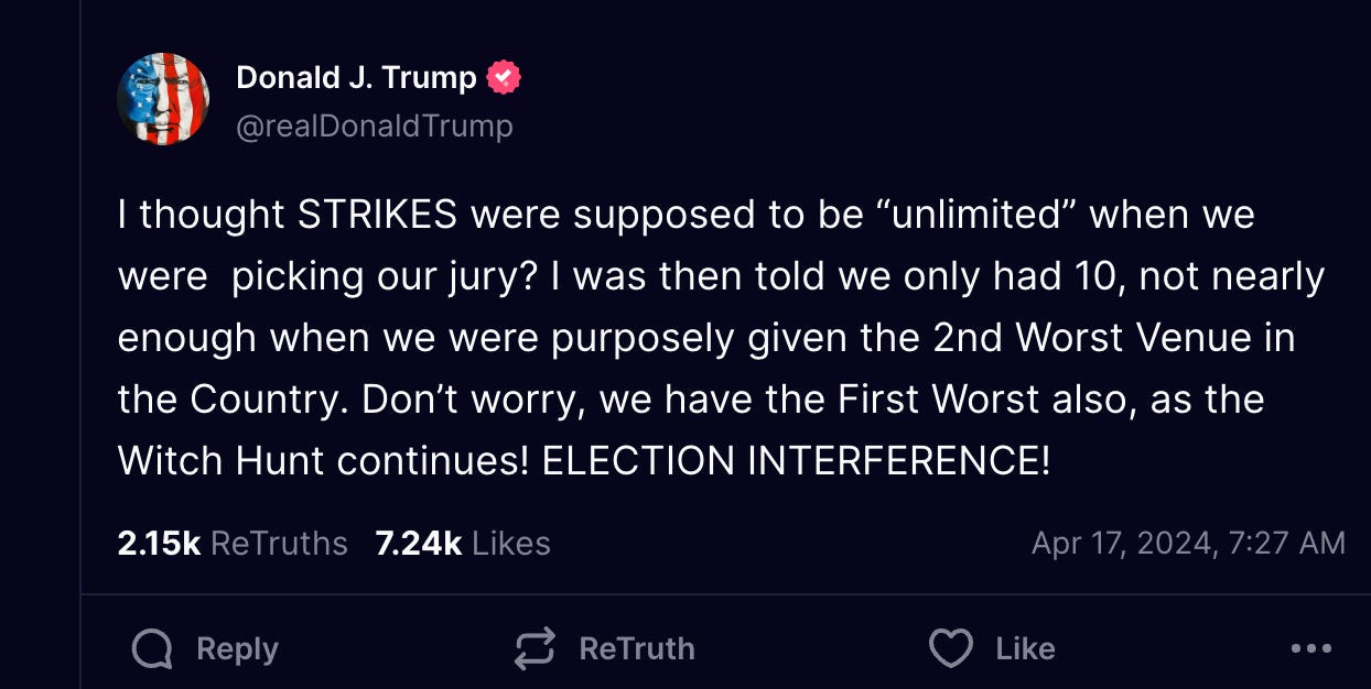 Boy oh boy, just another window into how his swiss cheese brain works. He's just learning NOW, after how many court appearances, that he can't use his privilege for unlimited jury stacking? Our laws, how do they work again? Shows how long he's skated on skirting justice and how entitled he is.