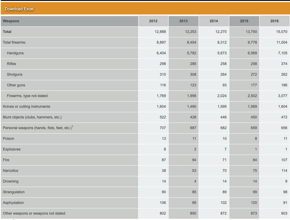 This is not an anomaly. Here are the FBI statistics on murders by weapon for the years 2012-2016, clearly showing that, even if you add them up, murder with blunt objects and murder with hands and feet do not even add up to one tenth the number of gun murders per year.