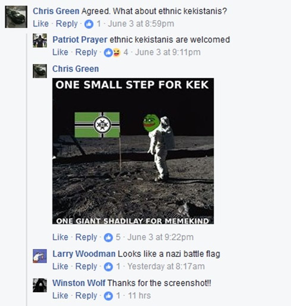 Christian had been photographed doing Hitler salutes at a previous rally held by the same "alt-right" group, Patriot Prayer, which is desperately trying to suggest it has nothing to do with hatred at all, oh no, definitely not: