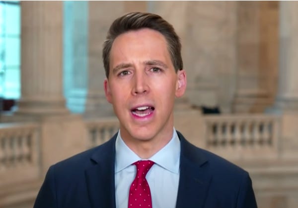 We'd say this might be a good time for Josh Hawley to examine his soul and see if it's worth throwing away all his integrity for the sake of NO PERCENTS, but then we'd stop ourselves from saying that because haha we just put "soul" and "integrity" in a sentence with "Josh Hawley."