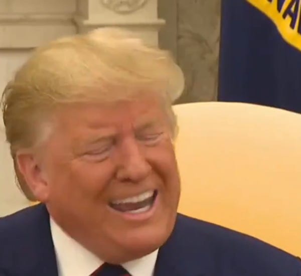 Trump, of course, has been previewing all the things he said on camera today on his Twitter feed this week, because his brain is like one of those olden timey record players that gets stuck all the time and also has tertiary syphilis.