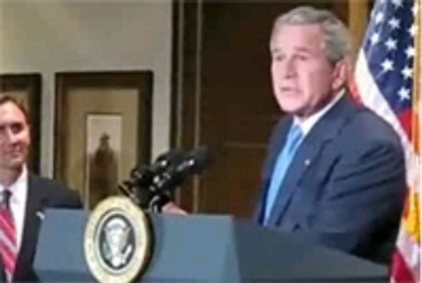 Anyhow, George Bush said something about Wall Street getting "drunk," and then he talked about house hunting without the requisite pieties about how Americans are suffering from the mortgage disaster. On the list of awful things George Bush has said, this is definitely on like the second or third page, but whatever, he opens his mouth so rarely these days.
