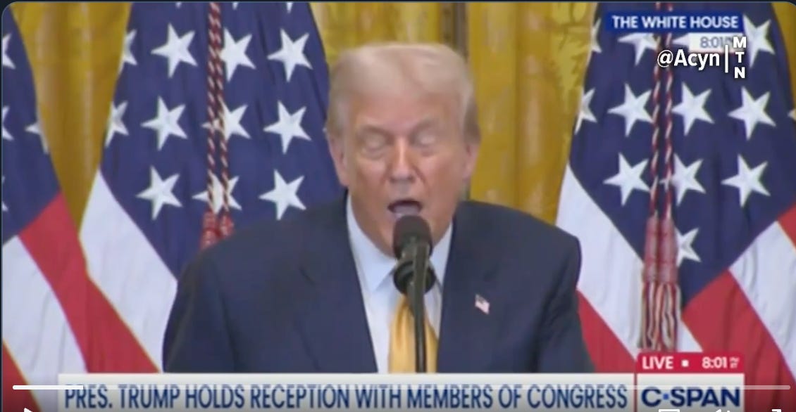 Because last night, as he honored Republican lawmakers at the White House with a reception — yes the same Republican lawmakers who are quitting all work right now so they can’t be forced to vote on releasing the Epstein files — he had vast praise for Tulsi Gabbard, his clownfucking director of national intelligence who fabricated this Obama “intelligence” for him. And because he’s Donald Trump, Jeffrey Epstein’s Pube Artist, it was gross and perverted.